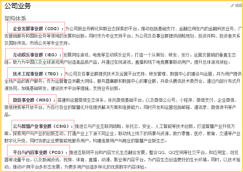 我們先看下騰訊旗下的業(yè)務(wù)版塊
