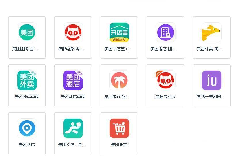 像這種相似的例子還有很多,例如從美團(tuán)的產(chǎn)品線上來(lái)看,一直致力于提供大家吃喝玩樂(lè)一站式服務(wù),但是旗下子品牌視覺(jué)系統(tǒng)較為凌亂,不成系統(tǒng)。
