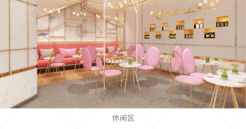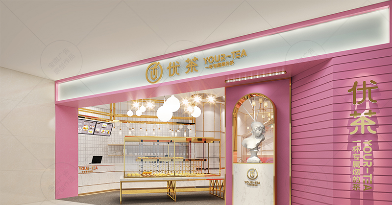 該店是優(yōu)茶茶飲全方位從女性角度出發(fā)打造的主題門店,采用少女感滿滿的粉色應(yīng)用到實體空間中,營造出少女夢幻的全新門店空間體驗。